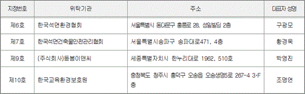 1. 학교석면안전관리인 교육 위탁기관